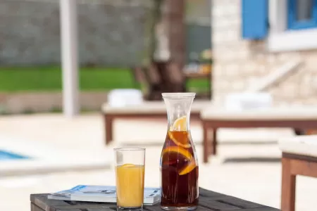 Središnja značajka pomno uređenog dvorišta Vile Seksta je zapanjujući prekrasni bazen od 32 m2 okružen ležaljkama gdje se gosti mogu sunčati i upijati sunčeve zrake. Nadalje, klizna vrata iz blagovaonice vode na vanjsku terasu s roštiljem i vrtnom garniturom, gdje gosti mogu uživati u jelima s roštilja i čaši istarskog vina. Cijelo je imanje Vile Seksta ograđeno tako da gosti mogu uživati u svojoj potpunoj privatnosti tijekom boravka u vili. Gostima koji dolaze automobilom na raspolaganju će biti dva privatna parkirna mjesta.