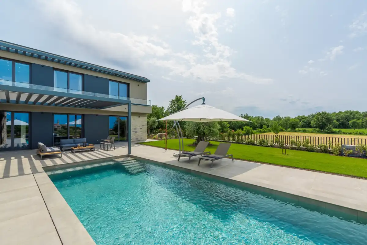 Smještena na mirnoj lokaciji u slikovitom Višnjanu, Vila Visignano nudi savršenu kombinaciju modernog luksuza i autentičnog istarskog šarma. S pogledom koji se proteže sve do mora i prepoznatljivog zvonika Višnjana, ova elegantna vila idealno je utočište za goste koji traže mir, udobnost i privatnost u srcu Istre. Ovdje jutra započinju uz miris lavande i panoramu mora, dok večeri završavaju čašom vina uz zalazak sunca nad istarskim brežuljcima. Na potpuno ograđenoj parceli od 1144 m², s raskošnim grijanim bazenom od 49 m², wellness zonom i besprijekorno uređenim interijerom, Vila Visignano pruža iskustvo odmora koje spaja relaksaciju, eleganciju i užitak u svakom detalju.